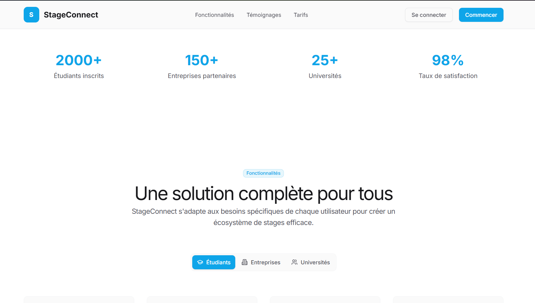 Plateforme de mise en relation étudiants-entreprises pour faciliter la recherche de stages.